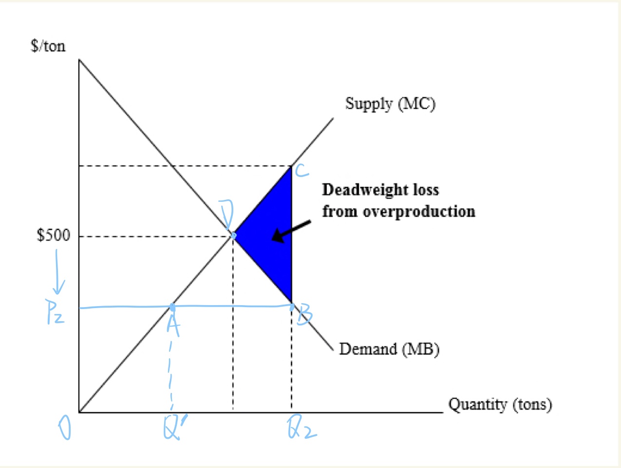 你画的这个图片,它描述的是生产过剩下的无畏损失。