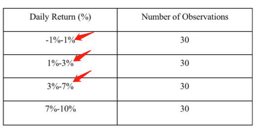 根据题目表格,4个区间相当于把这组数据切了3刀,分别在“1%”、“3%”和“7”进行切分