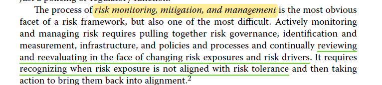 monitoring指的是在不断变化的风险敞口和风险驱动因素面前,不断审查和重新评估。