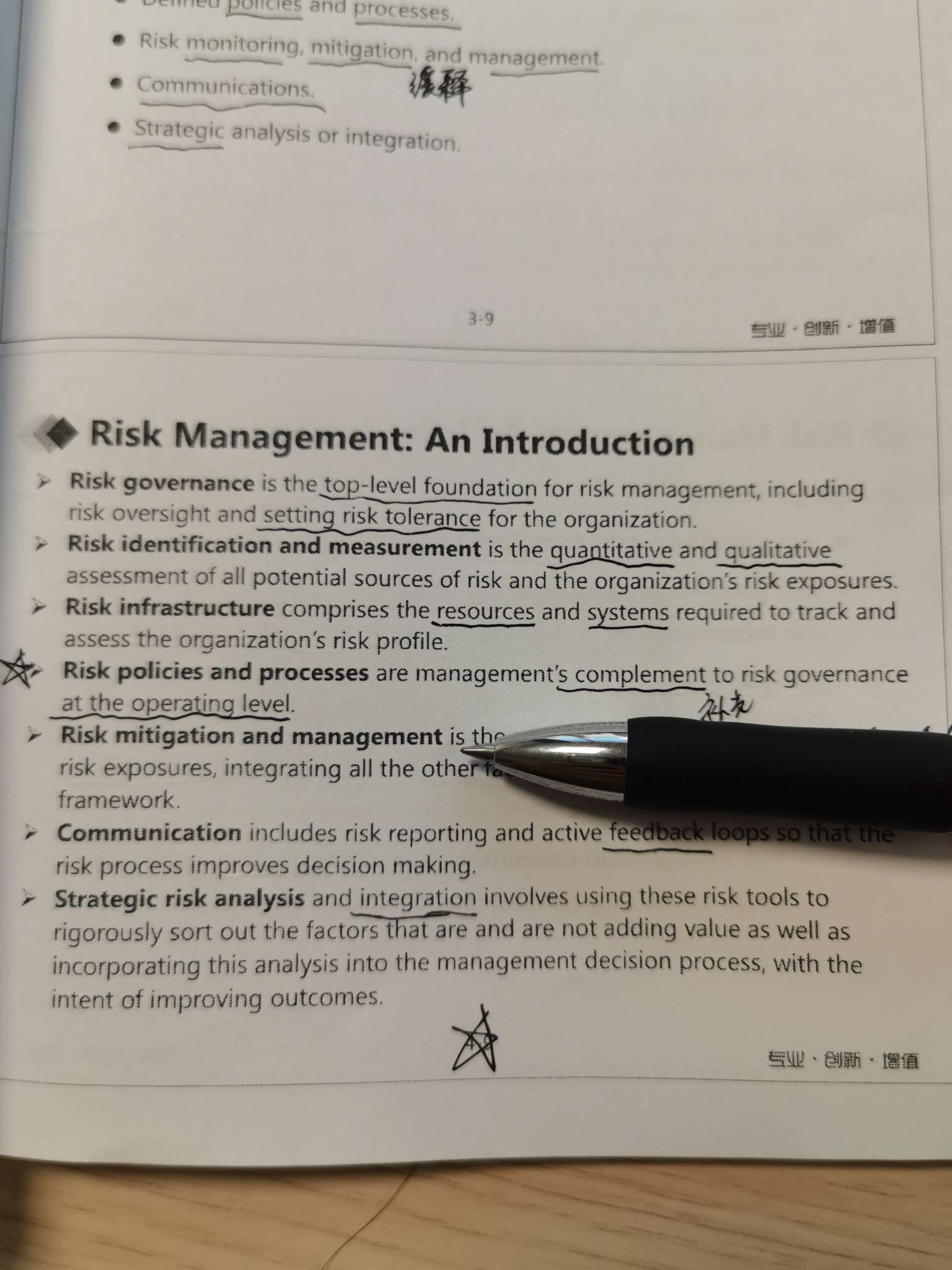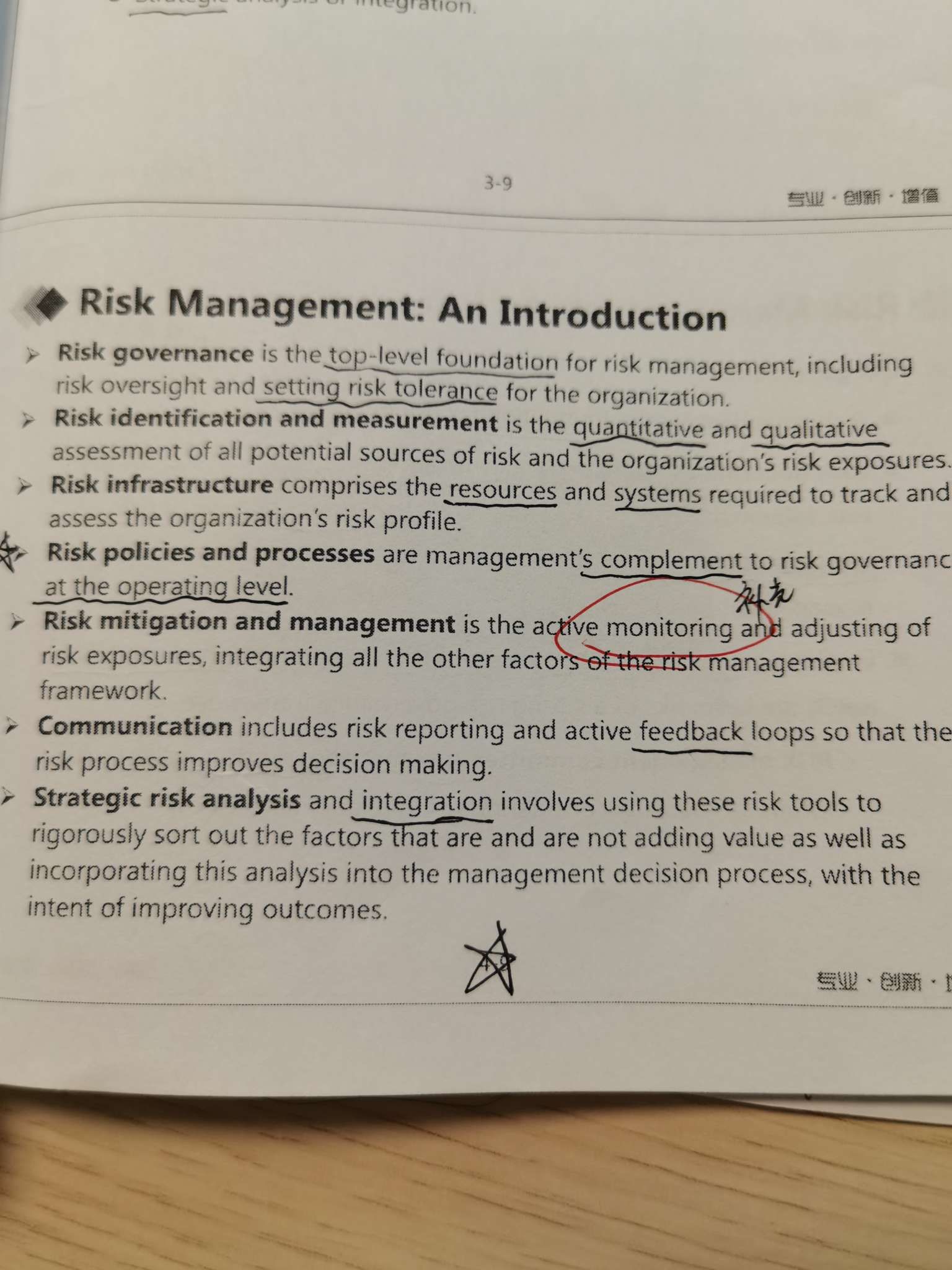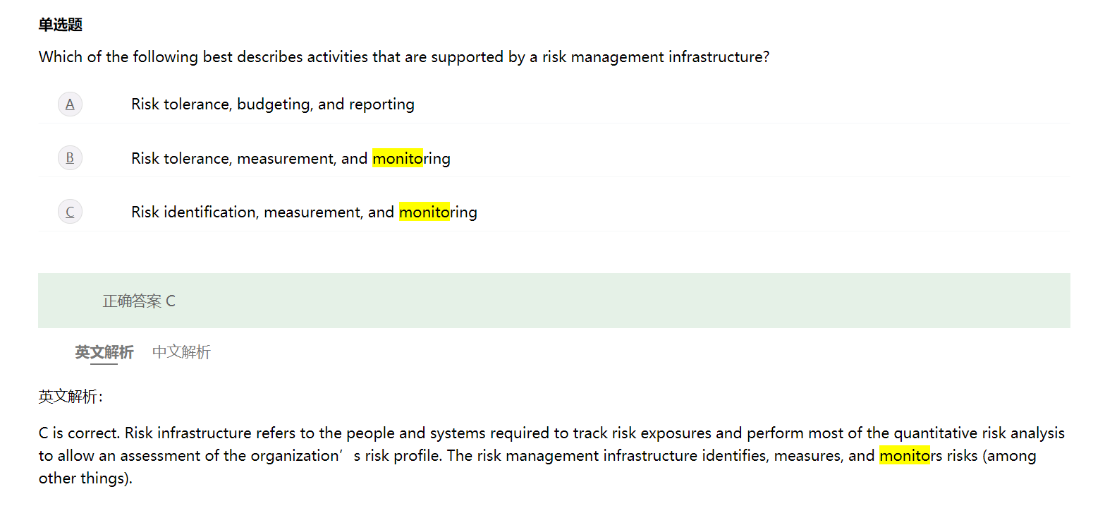 这道题的解析,在第三个风险的基础建设里提到了monitoring,而在讲义中,风险的缓释和管理那一步,又提到了monitoring