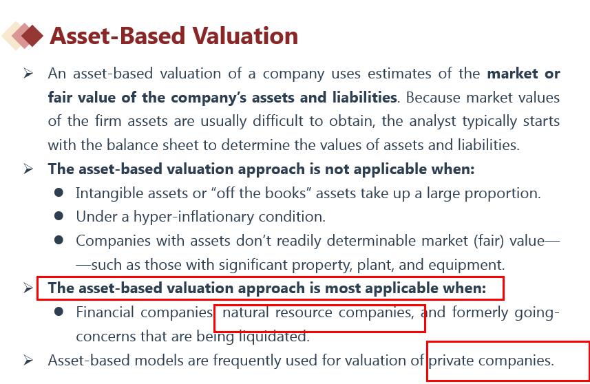 这道题目问asset-based valuation最适合以下哪一个公司估值?