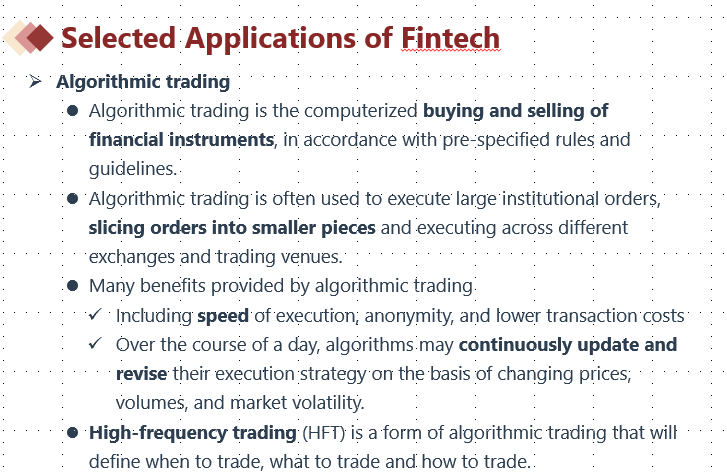 algorithmic trading知识点在基础班可以找到,但是题目一模一样的内容是找不到的,我们可以将题目作为知识点的补充,更好的理解知识点。