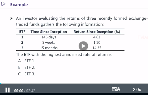 题目表格中列出来的都是HPR持有期收益率,涉及到HPR和EAR的转化公式分别是:
