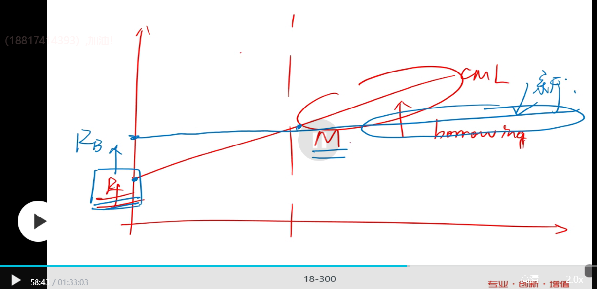 例子中有“10%和15%中”是想说明“融资成本”会随着风险的上升而上升,最终CML会变得“拐折”如下截图,“10%和15%”不是无风险收益率
