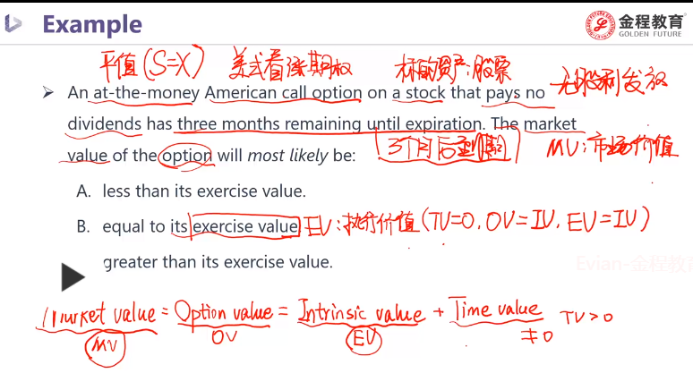 【回复】exercise-value是立刻行权的价值,立刻行权就没有时间价值了,此时就是intrinsic-value