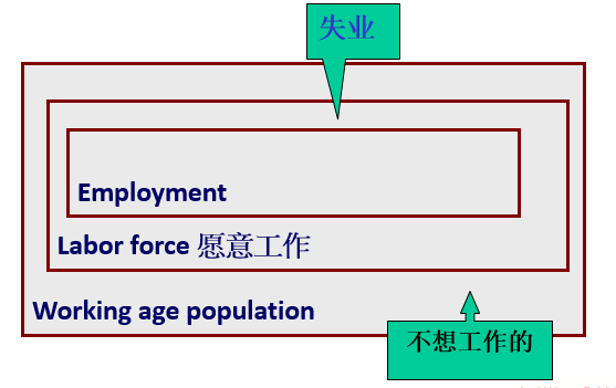 working age population,劳动适龄人口,指的是一个国家的人口中处于适龄适合工作的人,各个国家对劳动适龄人口的定义不同,一般将其定为16~64周岁。即working age population中包含了Labor force 和不愿意工作的两类型人。
