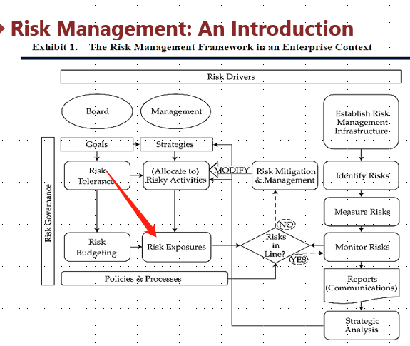 一旦企业确定风险容忍程度risk tolerance(又称risk appetite),就需要考虑去承担多少风险(risk exposure)
