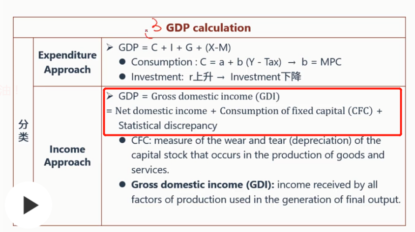 GDP的收入法下,GDP = Gross domestic income (GDI)=