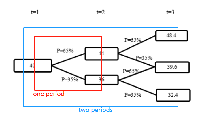 题目说了:"at the end of two periods”,说明我们只考虑“2期”,然后就停止不再无限下去了