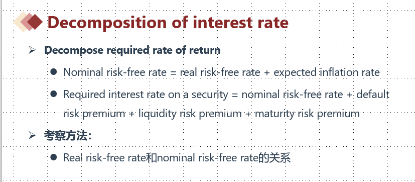 nominal rate (Required interest rate on a security讲义描述)=nominal risk free rate+risk premium