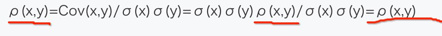 ρ(x,y)=Cov(x,y)/σ(x)σ(y)=σ(x)σ(y)ρ(x,y)/σ(x)σ(y)=ρ(x,y)