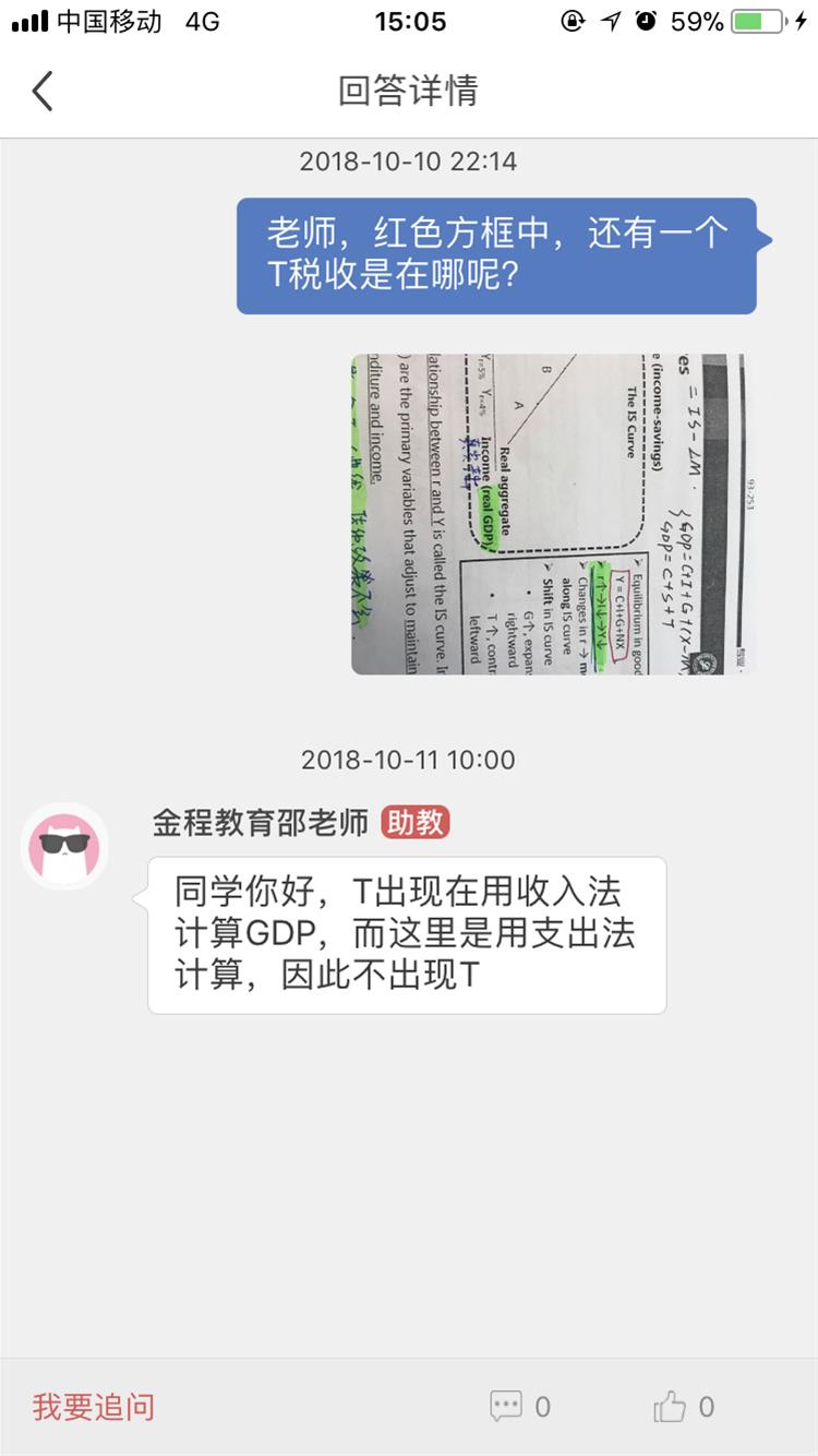 同学你好,T出现在用收入法计算GDP,而这里是用支出法计算,因此不出现T