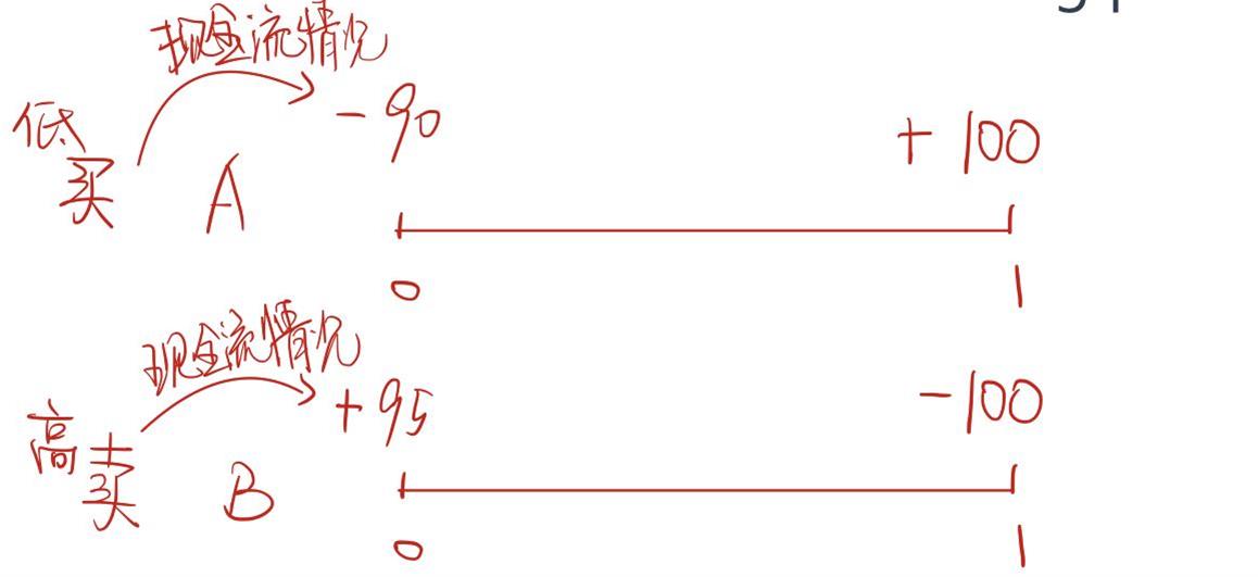 例如下图,只要把期末这个时间点的现金流调成“相加和为0”的情况,那么期初现金流就会产生净额收益