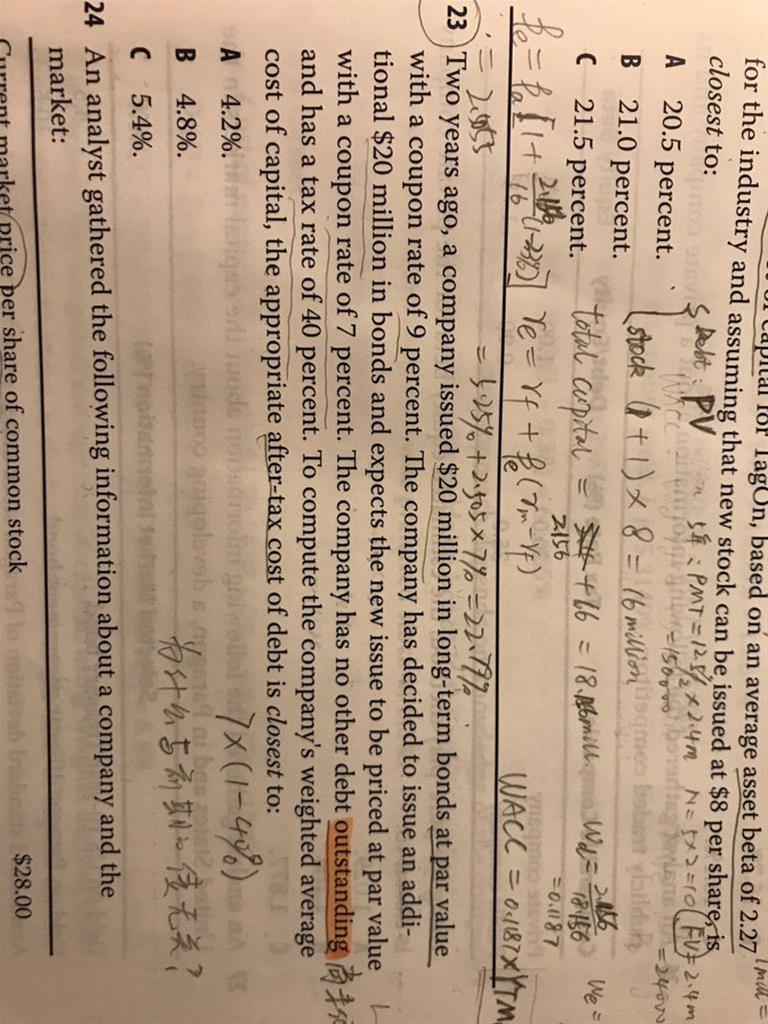 数据老是用错,求解答1、为什么14题的权重不用市值下的债和股求? 2、为什么15题的D/E不用题中提供的debt to equity ratio 的值?
