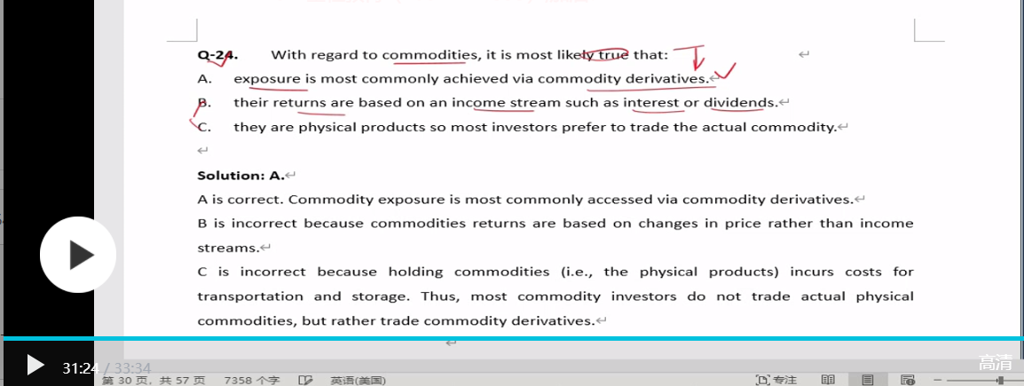 其实A是在说大宗商品现货买卖交易不容易达成,例如我们投资100吨石油意味着我们要把这些石油进行运输和仓储,而大宗商品的衍生品交易没有运输和仓储发生,所以投资者使用衍生品投资大宗商品更加便捷灵活。