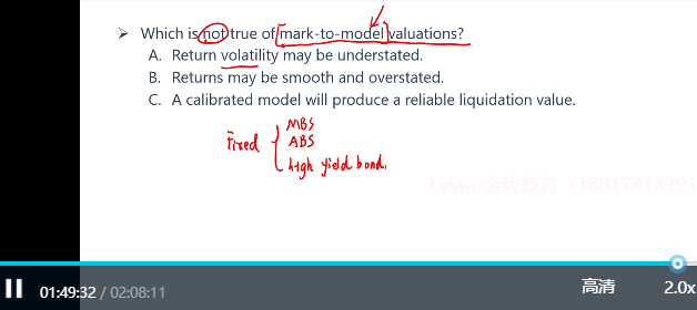 C是错的,就算估值是很准确的,也不代表就可以按估值的价格把这个资产清算掉。比如说有一个资产,估值是400万,但由于市场有交易成本和流动性差的问题,可能没法真正卖400万。