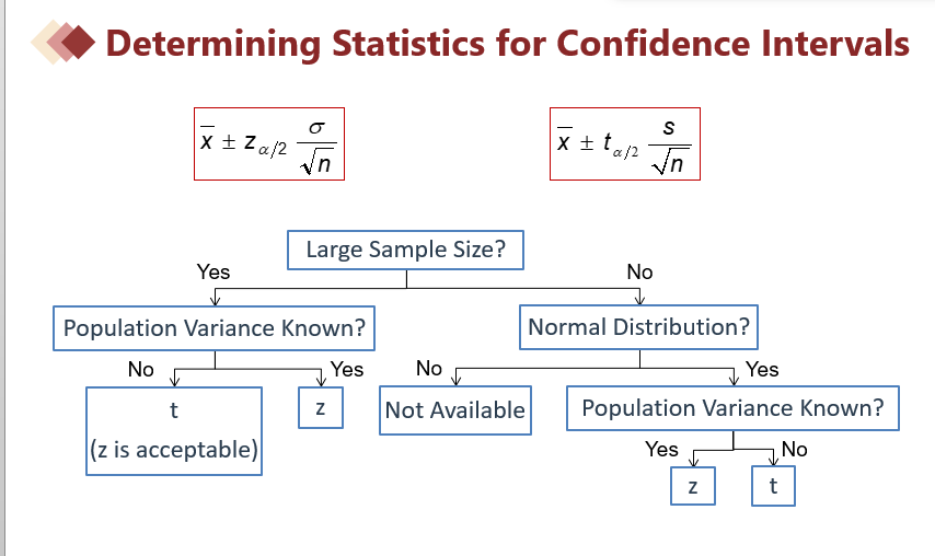 用样本均值估计总体均值时,我们需要构建置信区间,此时用到的规则如下图所示,可以总结为: