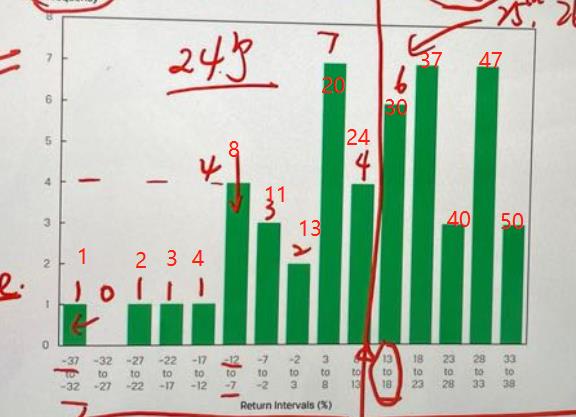 说50年所以50个数据从大到小排序求中位数是第25-26之间,但-32%~-27%的频率是0,也就是这个区间不存在数据,因此只有49个数据排序,中位数就是第25个?