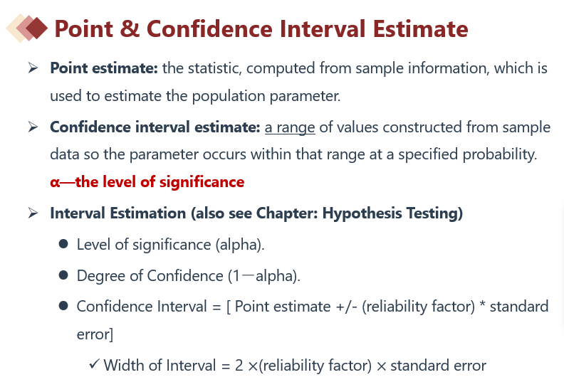 知识点“Point & Confidence Interval Estimate”有讲解