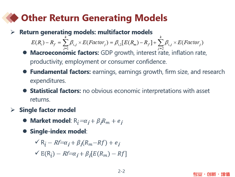 Return-generating models是其他收益模型,主要是计算个体资产的收益率。