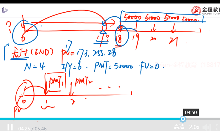 截图中的PV=173,255.28,说明在t=17时间点存够这么多钱,才够支付4笔学费