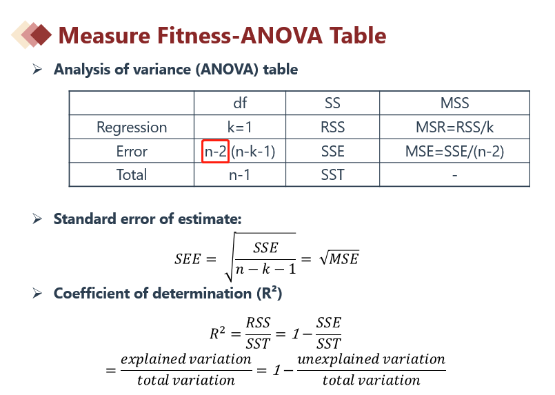 在CFA一级单元回归知识点中,单元回归斜率的自由度=残差项的自由度=n-2