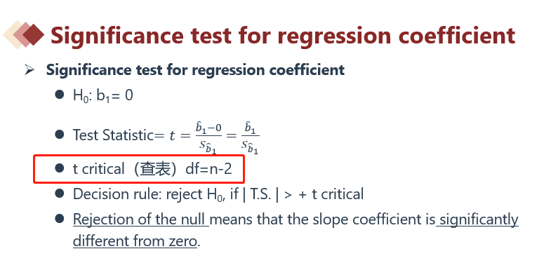 the degrees of freedom for the t-test of the slope coefficient in this regression are,为什么说斜率的自由度就是误差项的自由度,斜率和误差项没什么关系吧。