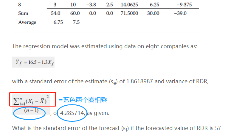 题目中还告诉了variance of RDR=[∑(Xi-X拔 )^2 ]/(n-1)=4.285714,n=8,因此可以得出:∑(Xi-X拔 )^2=4.285714×7=30