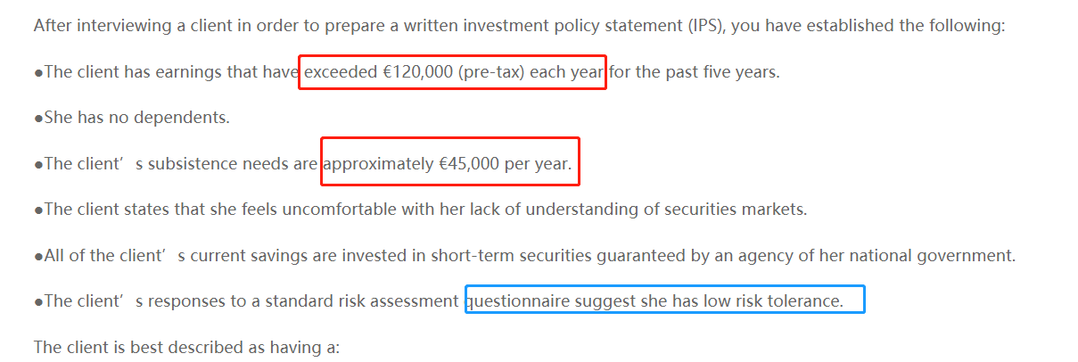 questionnaire suggest she has low risk tolerance却表示着 high ability to take risk?很迷惑