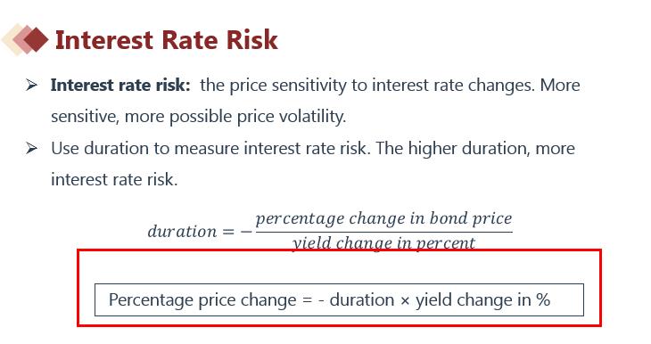 你的第一反应的方向是没错的,所以既然凸性没有给,那么就只考虑前半部分久期所导致的变化,见下图公式。