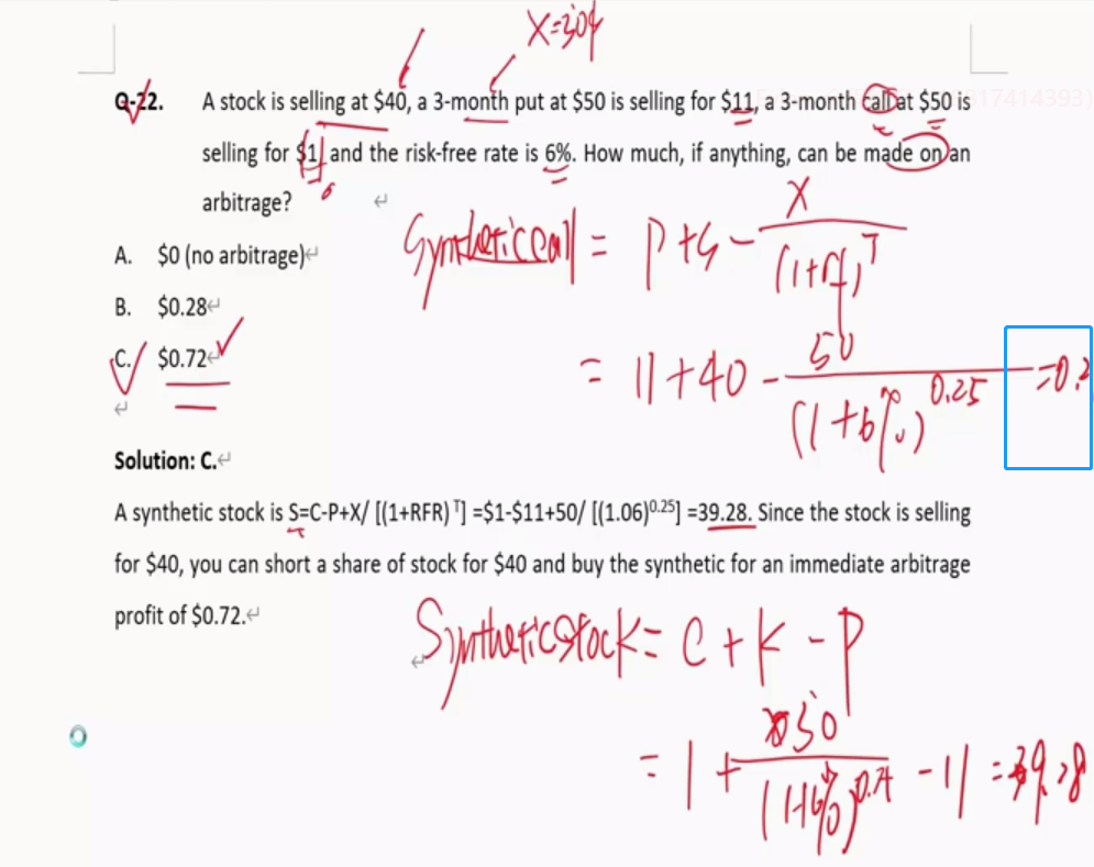 嗯嗯,你说的对,call option 的市场价格是1.72