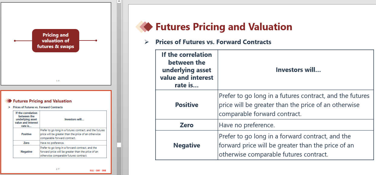 我查了一下本题的归属知识点,匹配的是“Pricing and valuation of futures & swaps”,题目匹配知识点与讲义(截图所示)一致。