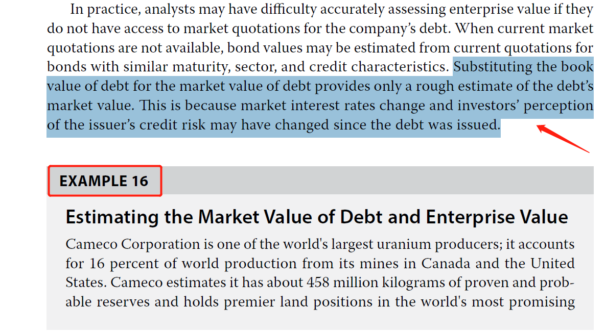 另外在CFA二级中我们认为当债务的MV不可得时,我们可以用BV做近似替代。