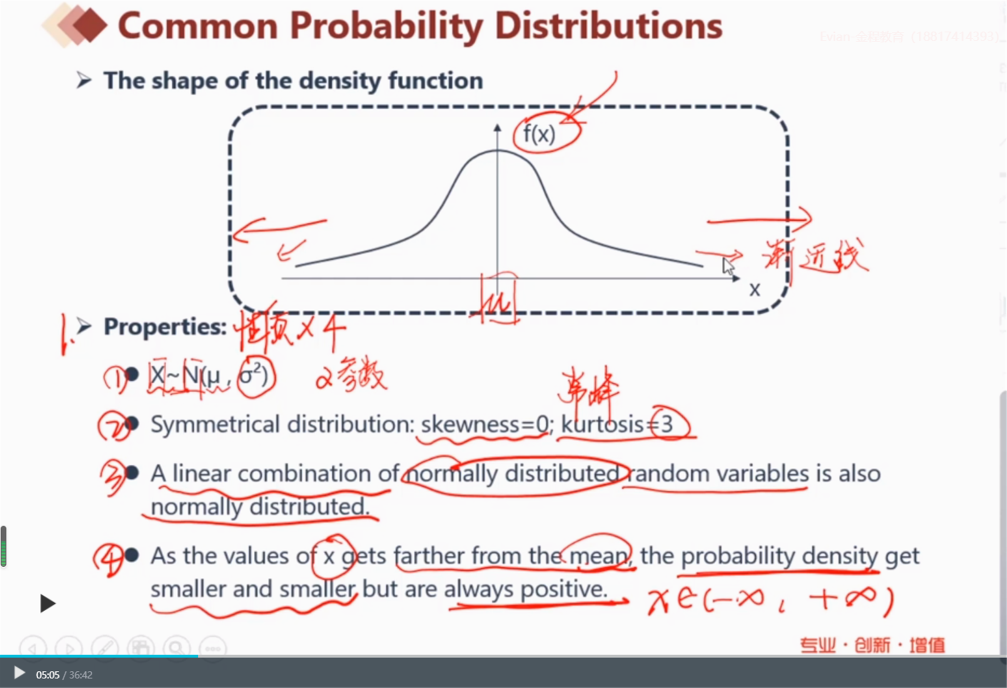 正态分布的第四条性质:老师在图中所标注的是曲线是一条渐近线,永远都不会和X线相交。但是在第四条性质讲解的时候说道,X的取值范围是正无穷到负无穷。我想问:我的理解中,前后是相矛盾的,应该怎样理解第四条性质。