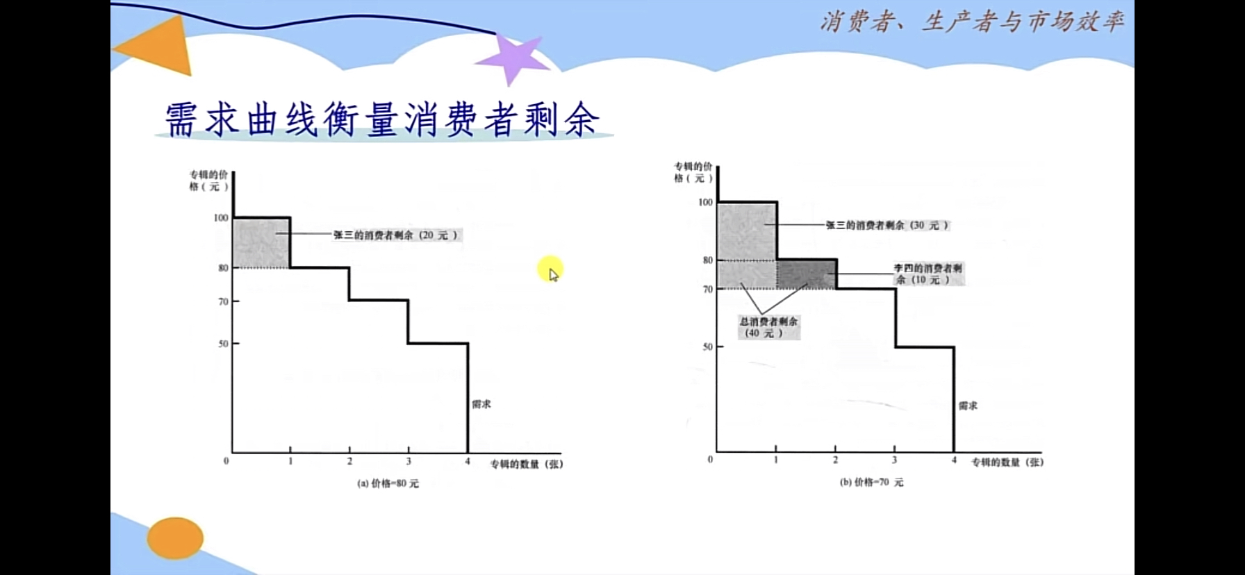 以下消费者剩余案例为有四人购买四张专辑,是用矩形面积计算消费者剩余。具体问题如图,谢谢。