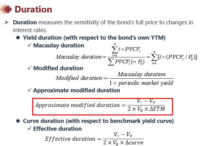 题干问的是 approximate modified duration,所以要用正确的公式计算,见下图。你的方法求得是modified duration。