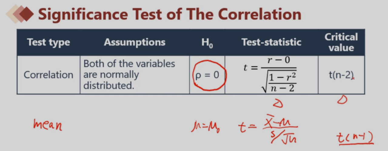 相关系数一定是两组数据之间的统计量,对应自由度为n-2,减去2是因为两组数据都涉及均值,所以收到两组数据的两个均值的限制。