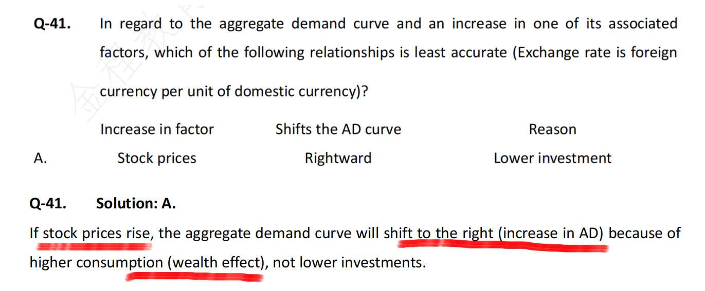 即使现在可以确认财富效应的描述是按讲义中的。但为什么我看到的财富效应的解释都是另一种(比如之前助教蓝色框的解释和我新附图的百题41的解释),都是说物价上涨,家庭财富增加,减少储蓄,增加消费,总需求AD↑。。。。这和讲义中的结论是相反的啊。我意思是如果要考财富效应,我们应该按照哪种结论来解题。。很多题目的解题结论并不是讲义中的结论哦