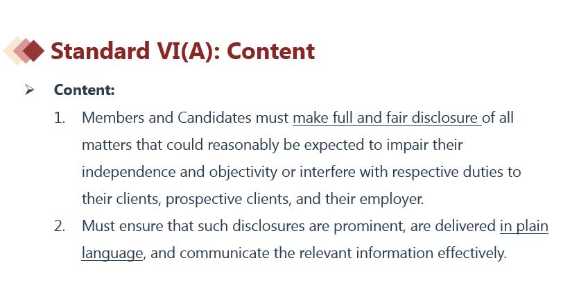 是会员和候选人对于其客户、潜在客户和雇主间的,必须充分、公平地披露所有可能会损害其独立客观性和干扰。