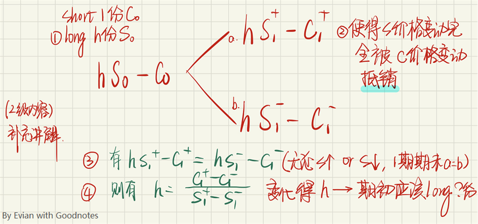 如附图:买入long “h”份股票S,并且卖出short“1”份看涨期权,此时构建了一个投资组合portfolio