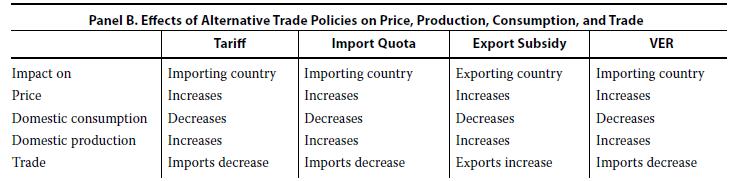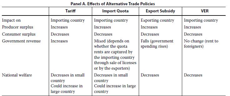 同学你好,任何trade restriction都是有两败俱伤的,率先提出的那一方是会有welfare loss,但是该国之所以提出相关restriction,其目的总归是为了保护本国产业和竞争力的,按照这个思路来考虑,贸易对象收到的损失可能会更大。在做题方面,可以记忆下面这两个表,能看出在VER方面,考纲他没说对出口国会如何,而只提及了对进口国家会有welfare loss。
