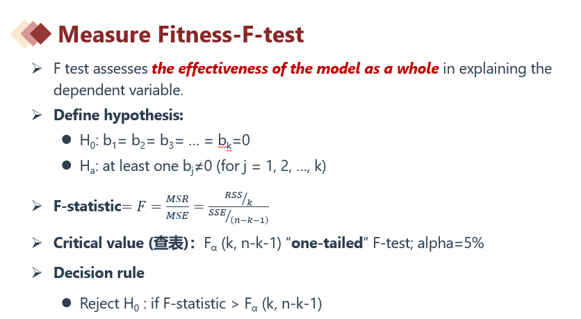 1.F检验可以用来判断多元回归中多个斜率是否为0,如下截图2