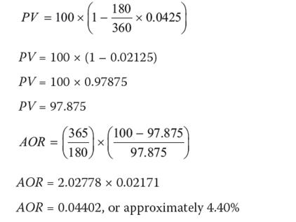 这道题说的是180天的banker’s acceptance,discount rate是4.25%,让计算BEY。用下面的公式。