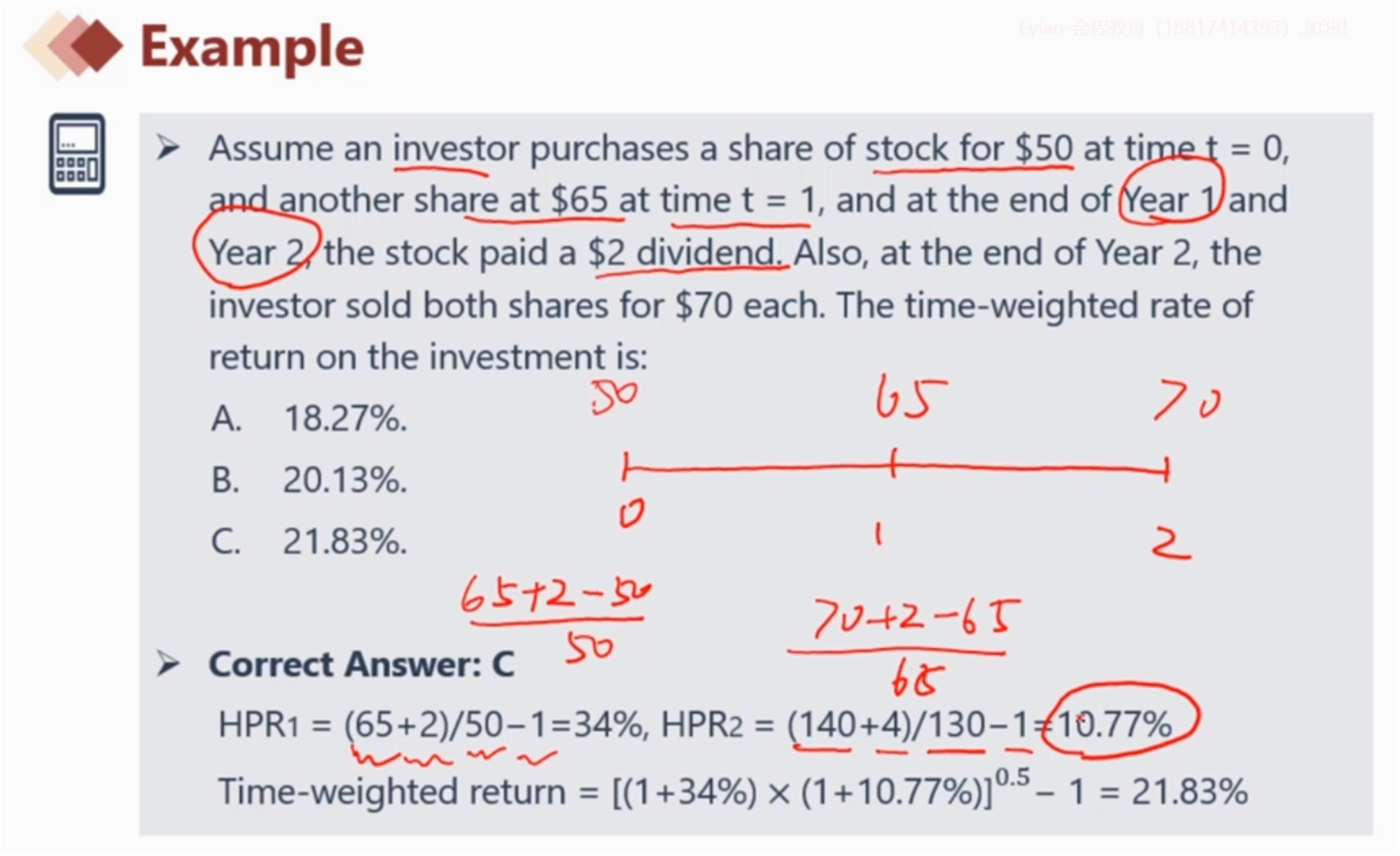 视频24:15例题里HPR2的计算为什么是除130,成本不是50+65吗,130哪来的?
