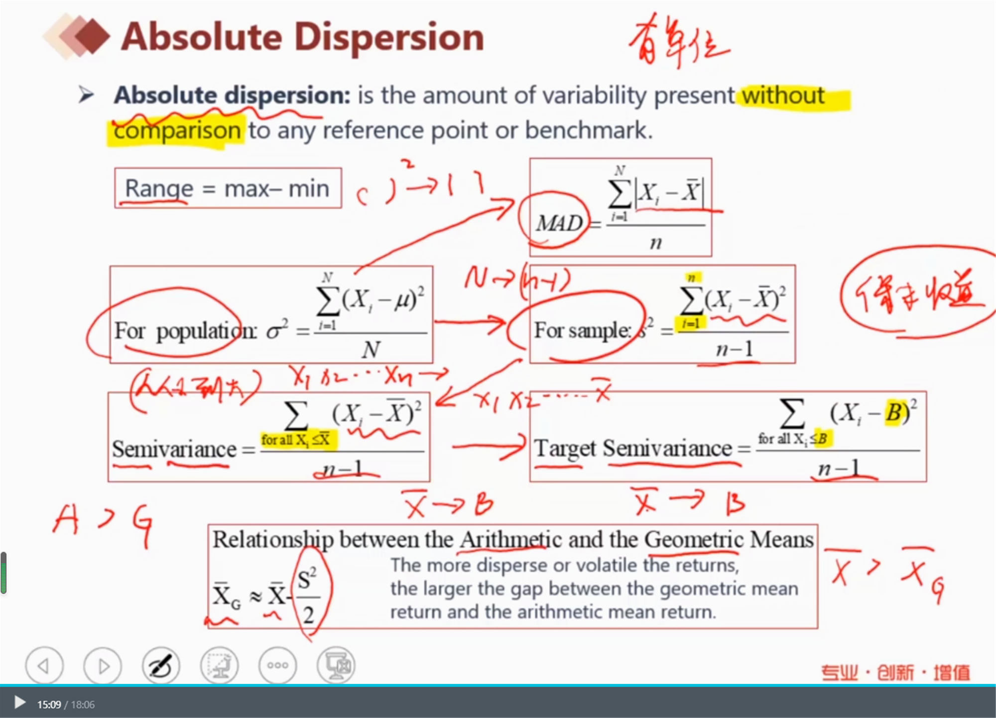 前一章课后题里面老师讲的是“几何均值约等于算术均值减去(总体方差/2)”,这章的讲义里为什么变成了“几何均值约等于算术均值减去(样本方差/2)”?