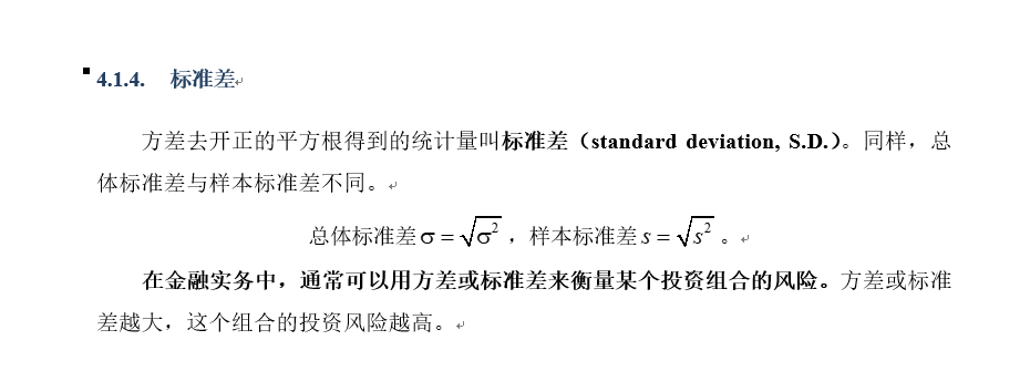 金融中的应用:用标准差和方差表示某一个资产的风险