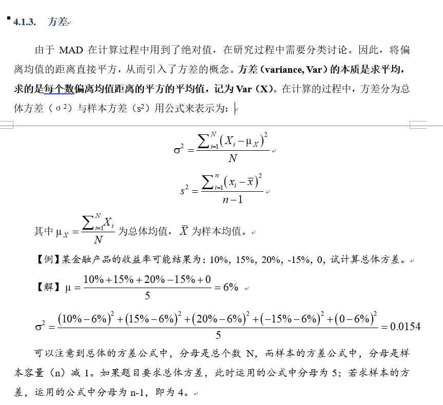 但是方差的单位就是“元²”,此时不能相加减了