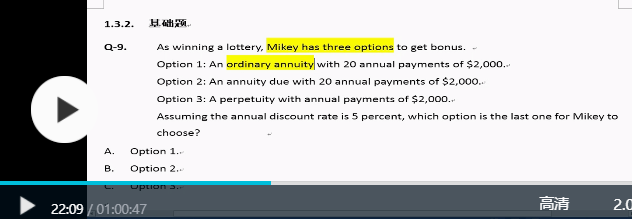 1.在0时间点(可以计算出每个option的Present value现值),例如,在t=0时刻,100和10两笔现金流,我拿100元比拿10元开心