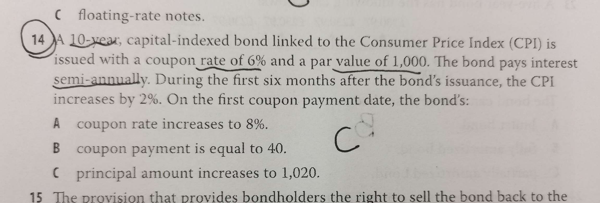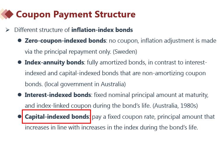 这里题干中写的是capital-indexed bond,是本金挂钩的意思。见下图