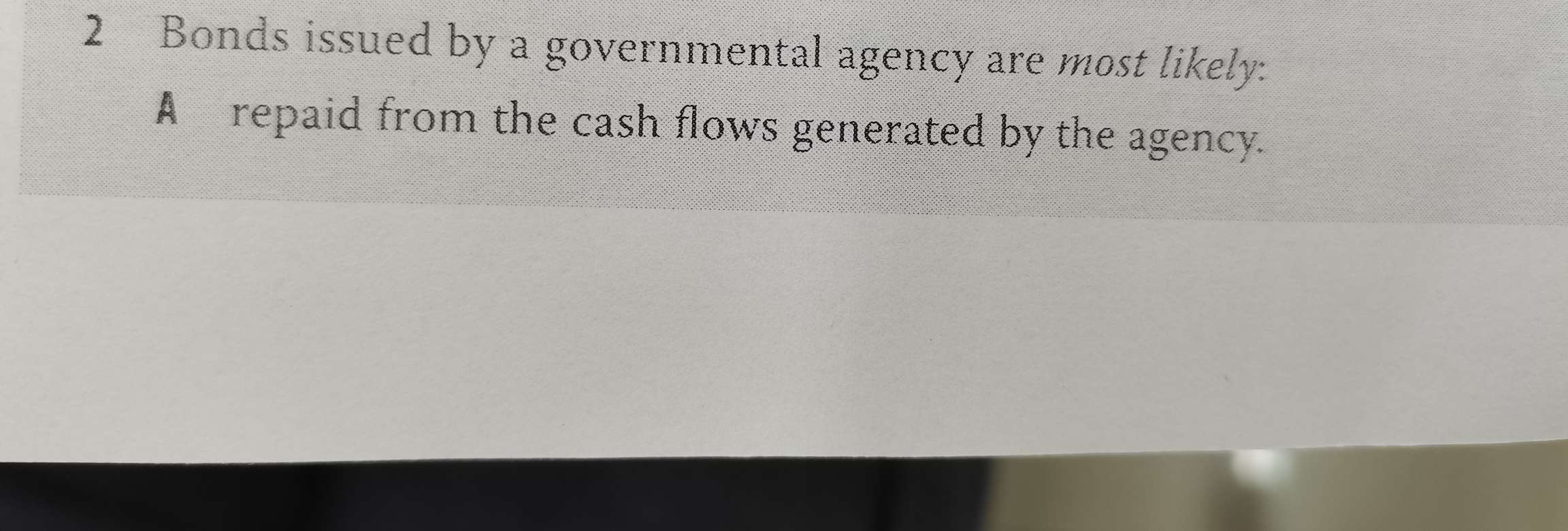 因为题干的主语是governmental agency,也就是agency。还款来源是cash flows generated by the agency。